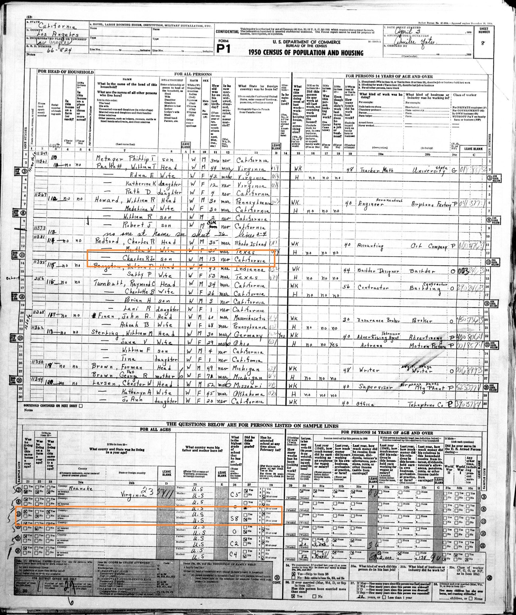 Zehn Jahre später, in der Volkszählung von 1950, erscheint Robert unter dem Namen „Charles R. Jr.“, inzwischen 13 Jahre alt und wohnhaft in der 11331 Homedale. Sein Vater arbeitete zu dieser Zeit bereits als Buchhalter.