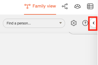 Um ein minimiertes Panel wieder zu öffnen, klicken Sie auf den Pfeil oben rechts im Stammbaum.